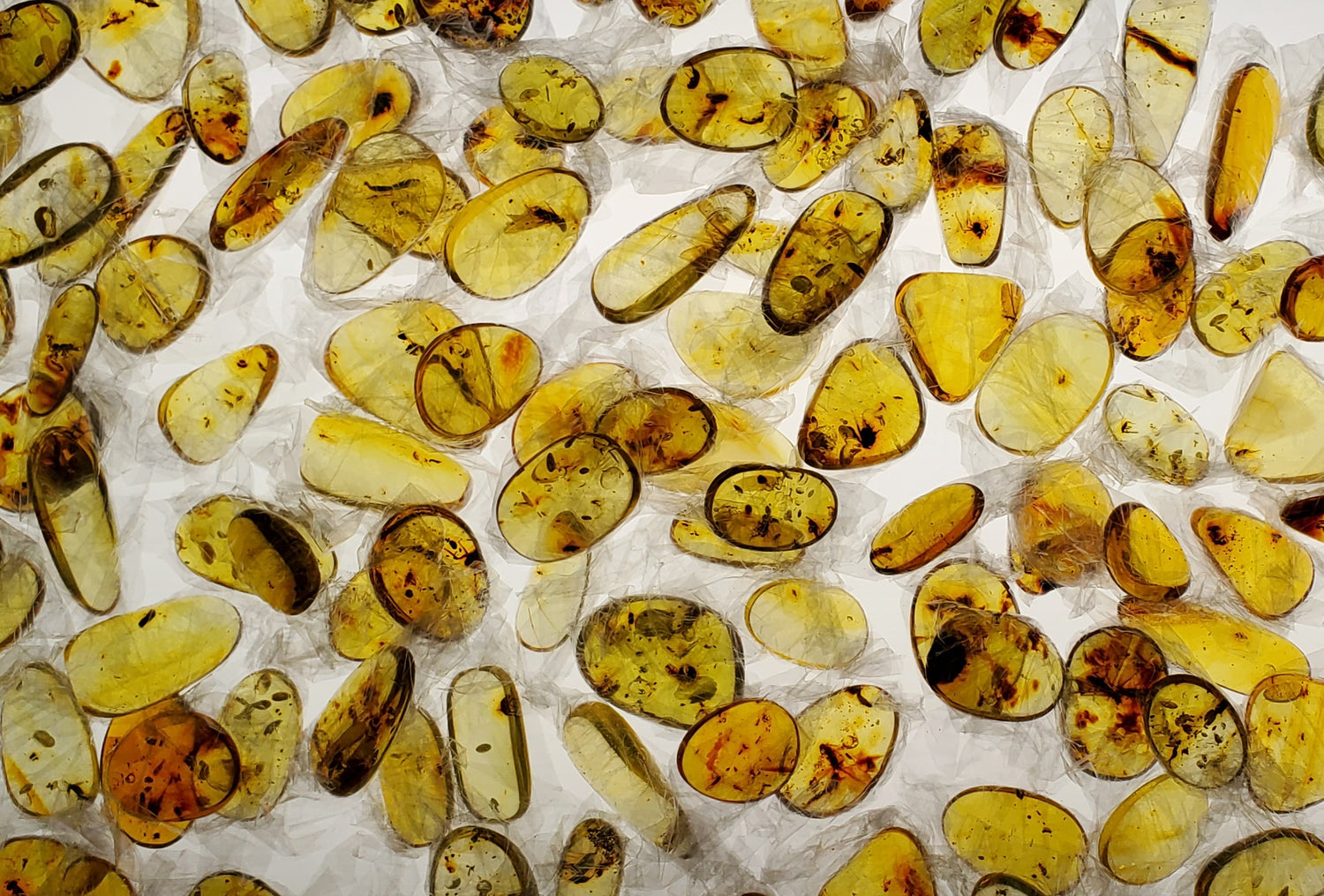 5 Randomly Chosen Small Amber Specimens Polished with Bug Inclusions.