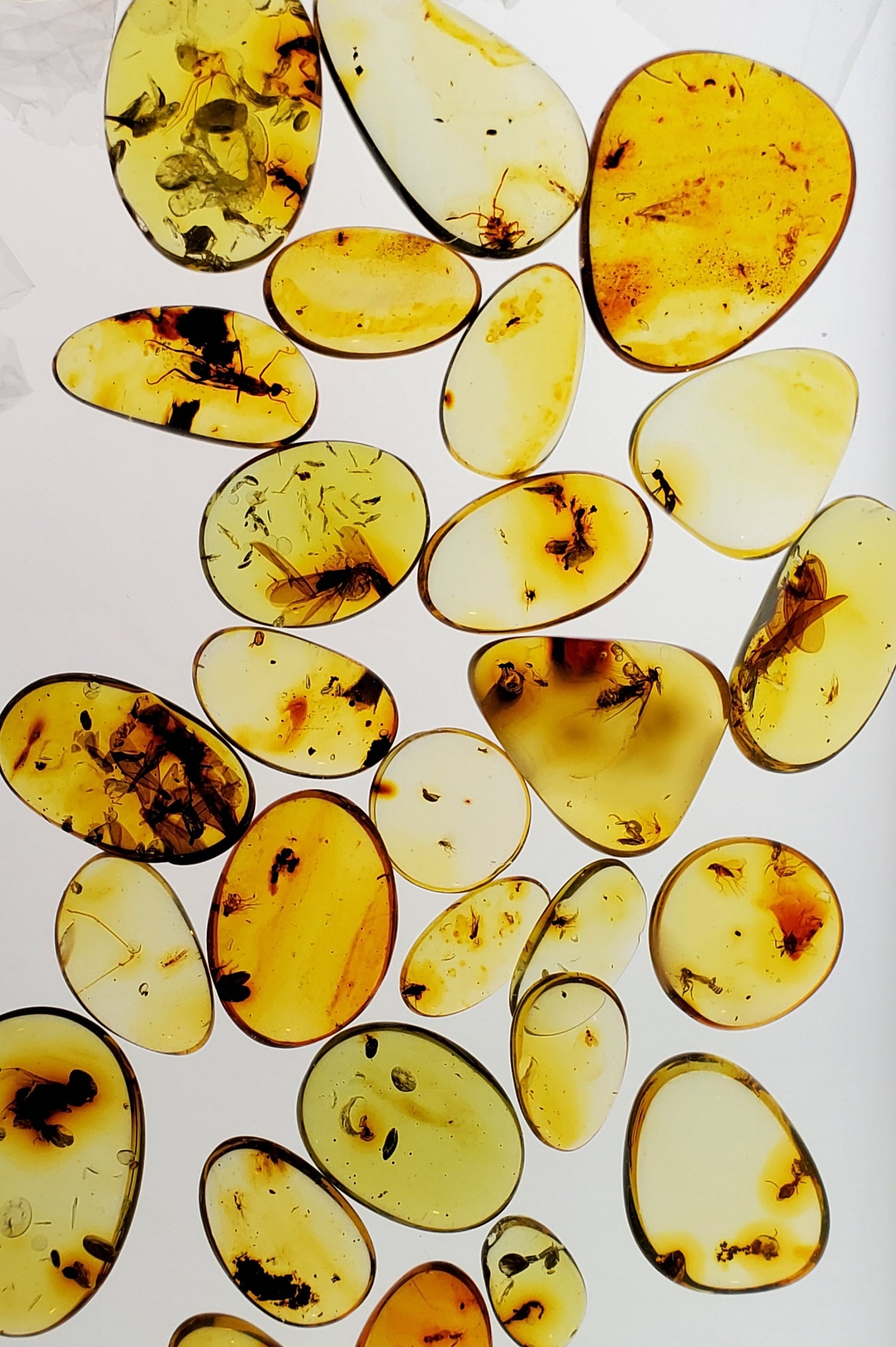 5 Randomly Chosen Mini Amber Specimens Polished with Bug Inclusions.
