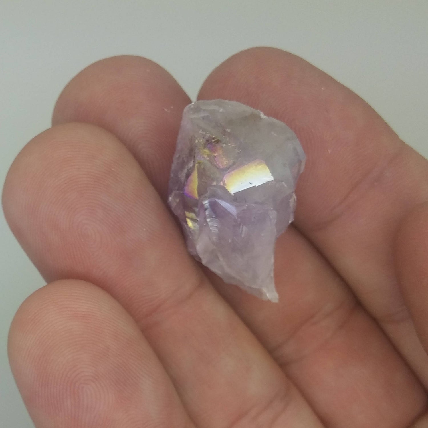 AMETHYST AURA IS QUARTZ CRYSTAL that has been treated with zircon via vacuum deposition to give an amazing opalized look or rainbow sheen.