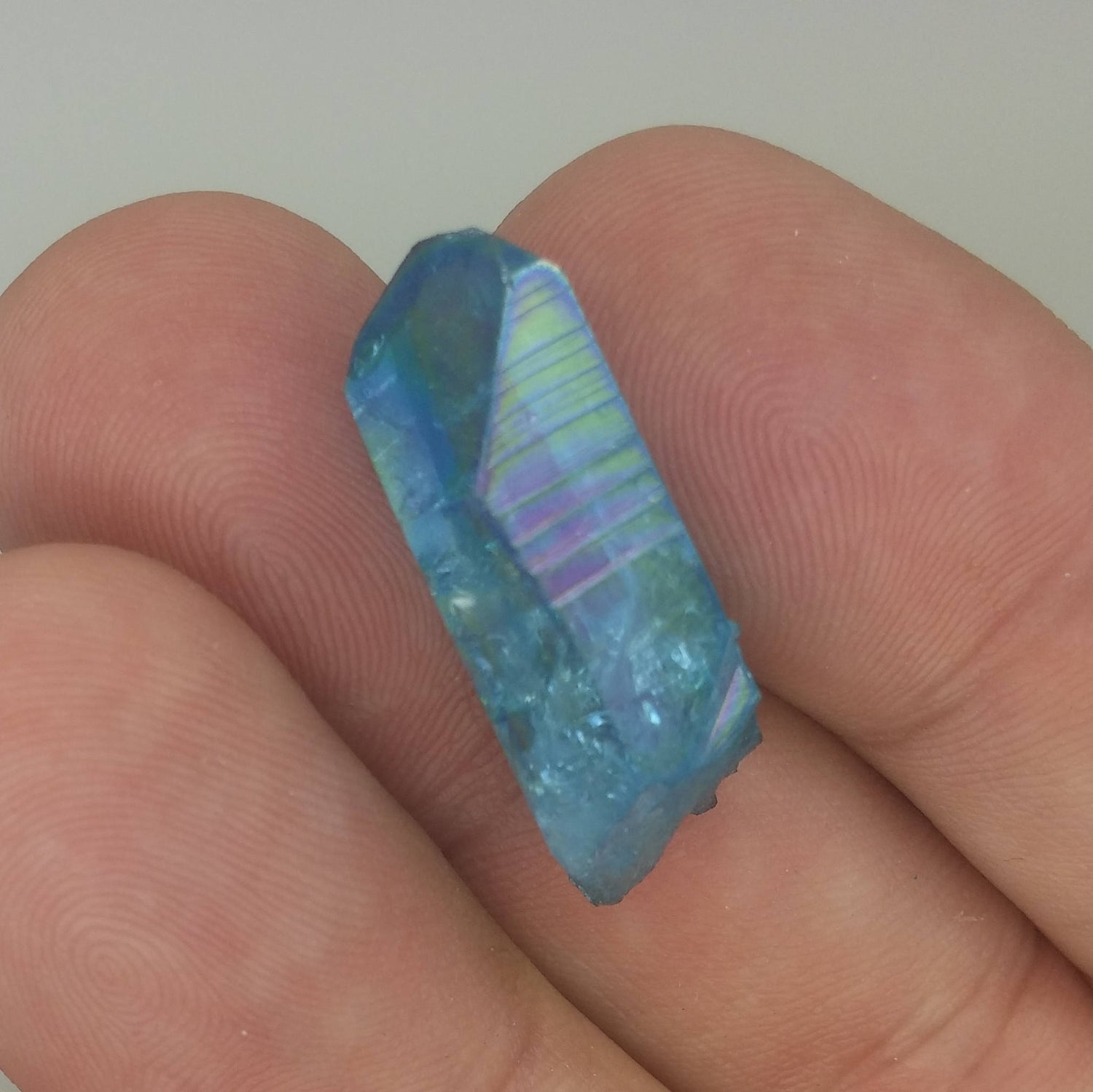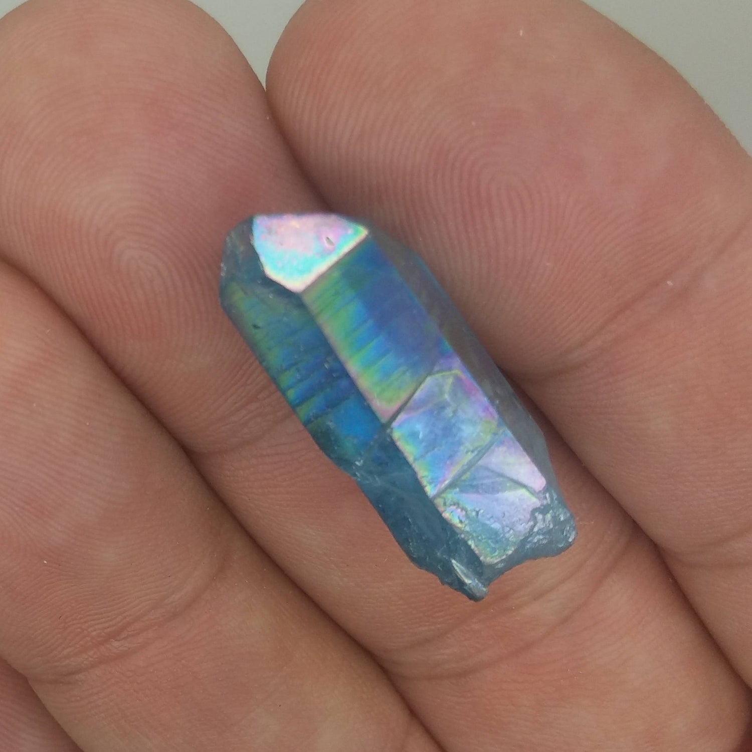 AQUA AURA IS QUARTZ CRYSTAL that has been treated with gold via vacuum deposition to give an amazing blue and opalized look or rainbow sheen.