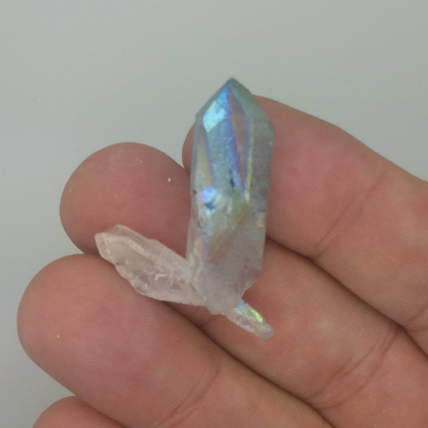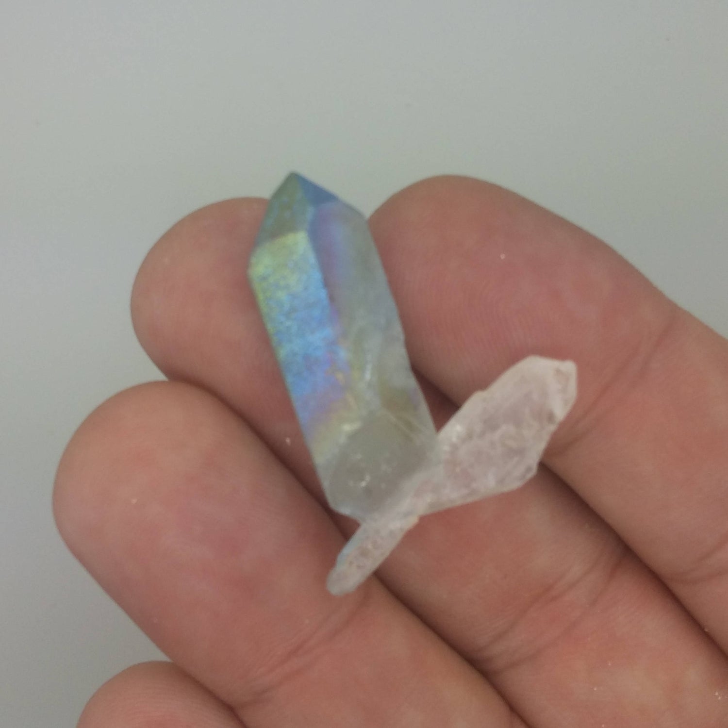 AQUA AURA IS QUARTZ CRYSTAL that has been treated with gold via vacuum deposition to give an amazing blue and opalized look or rainbow sheen.