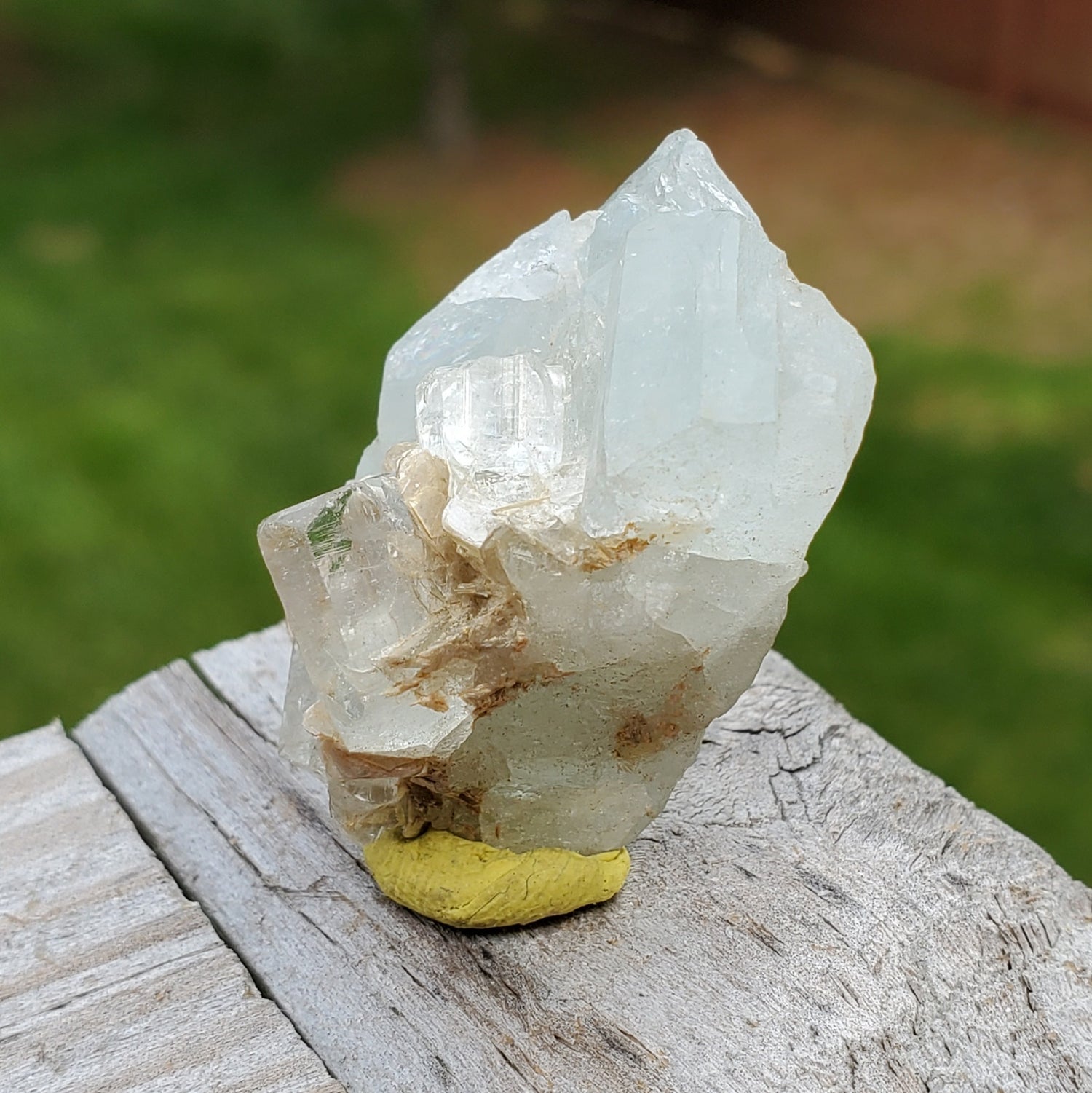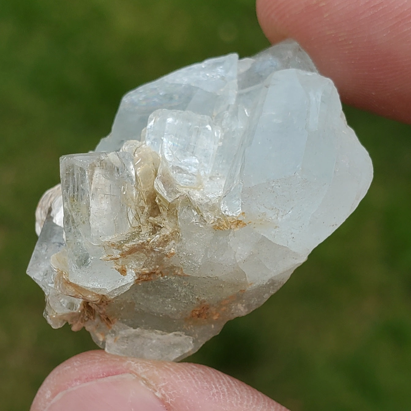 Nice multi crystal form of Aquamarine growing off of the mica matrix.