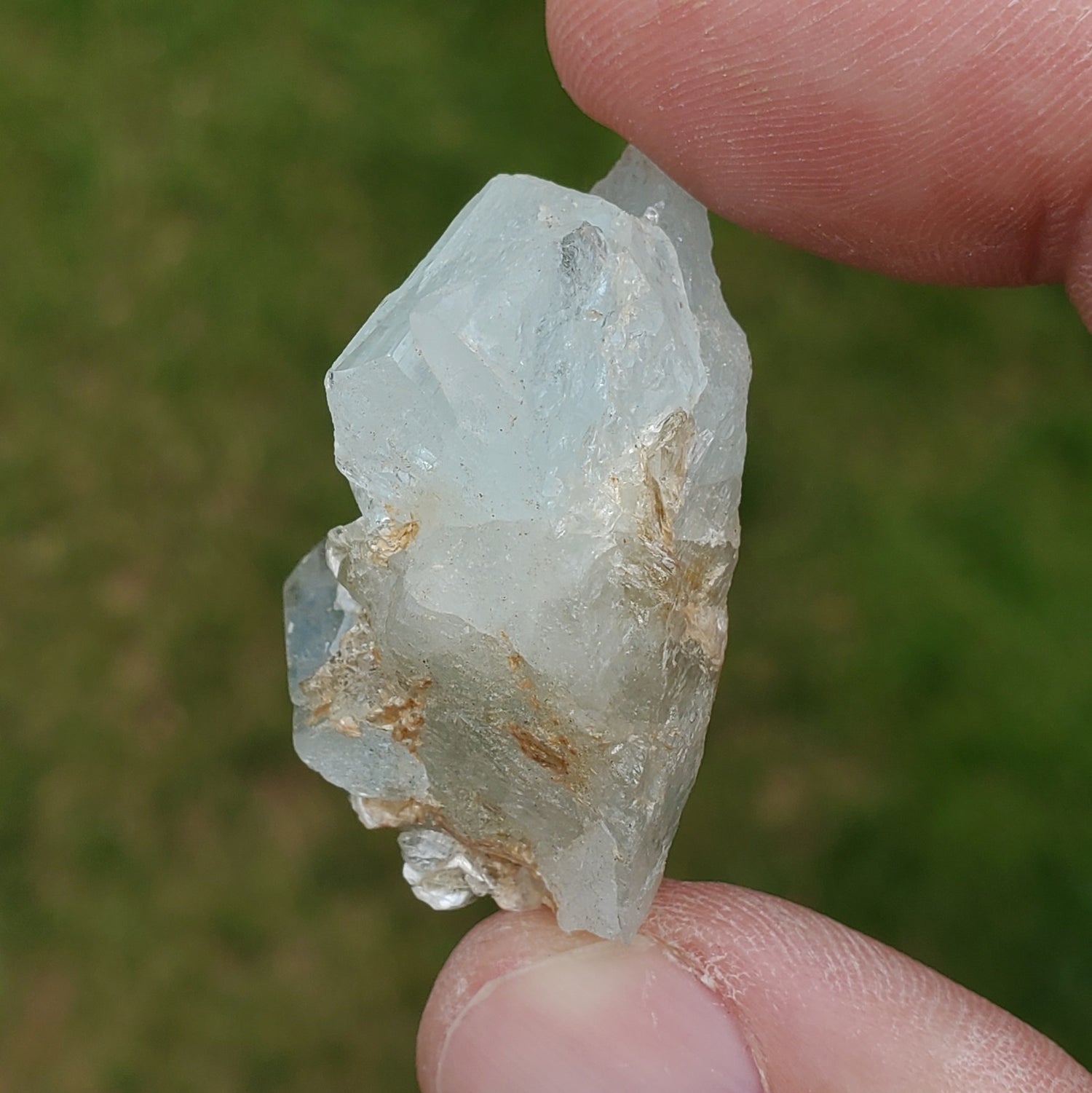 Aquamarine is a beryl, like emerald, in the hexagonal crystal system.