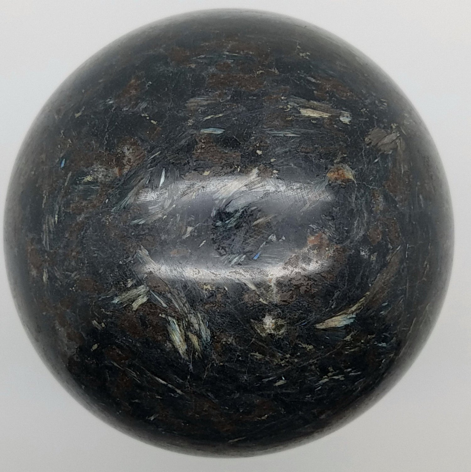 Polished Gemstone Sphere of ARFVEDSONITE.