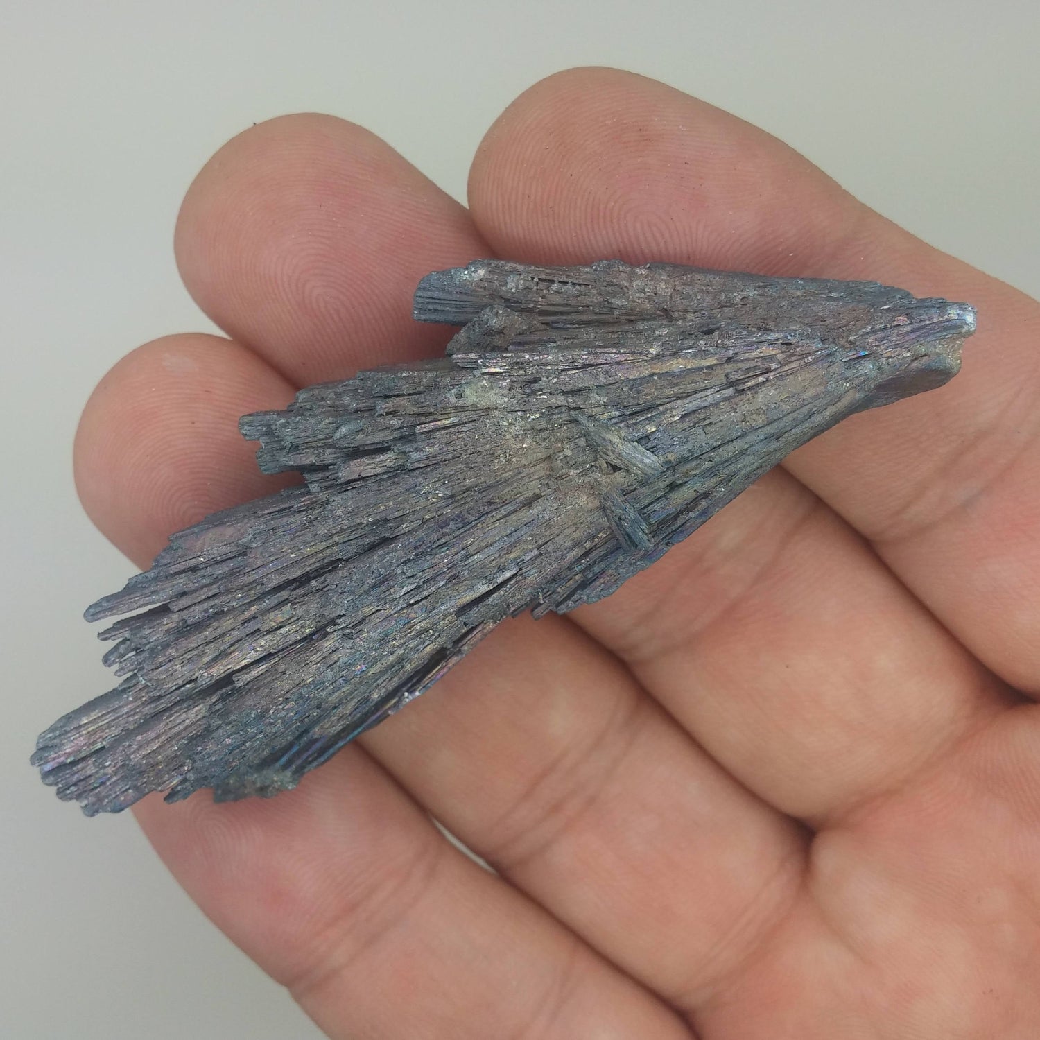 Opalized Aura Black kyanite has been treated with zircon via vacuum deposition to give an opalized look or rainbow sheen.