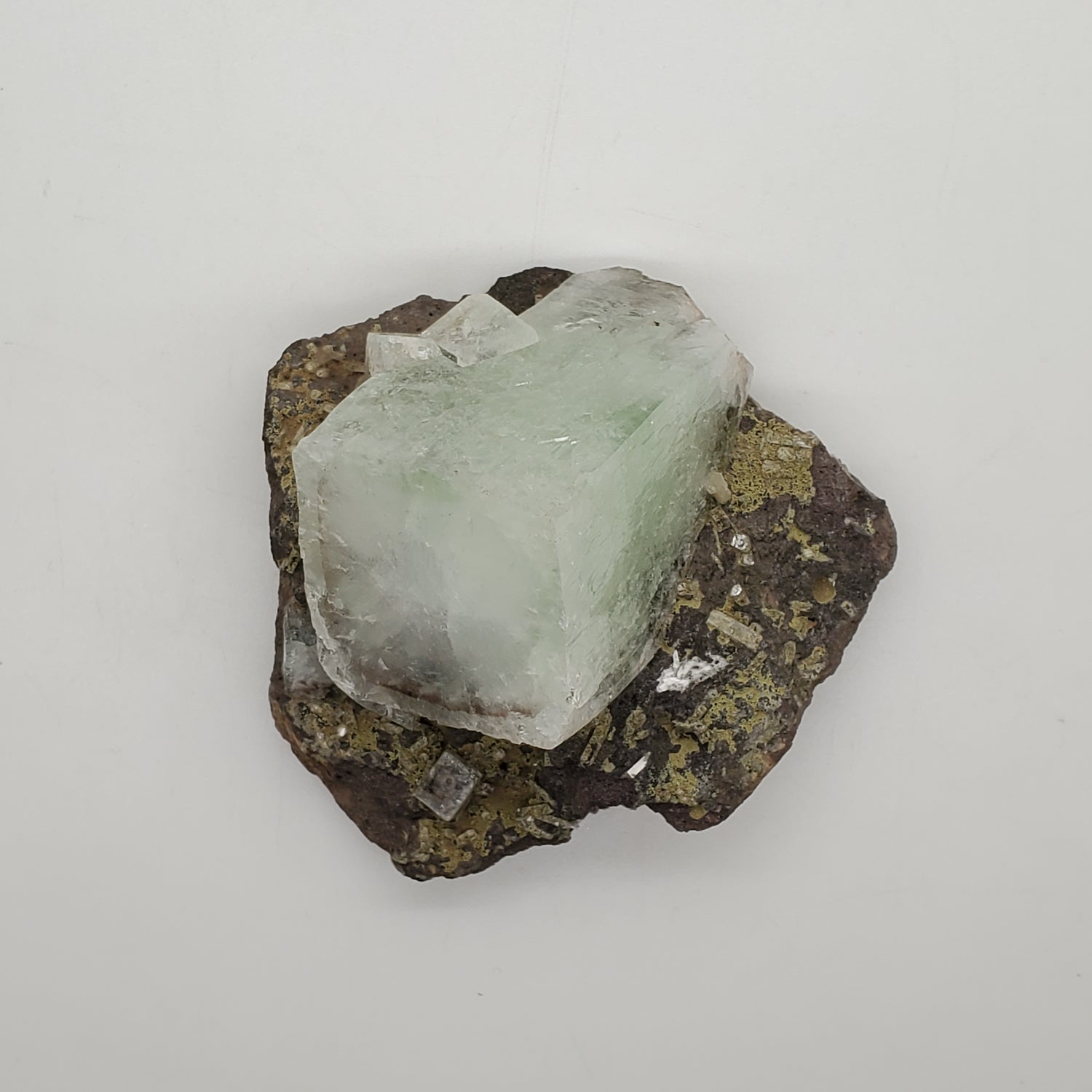 Great specimen with stilbite and clear apophyllite crystals growing on matrix stone as well!
