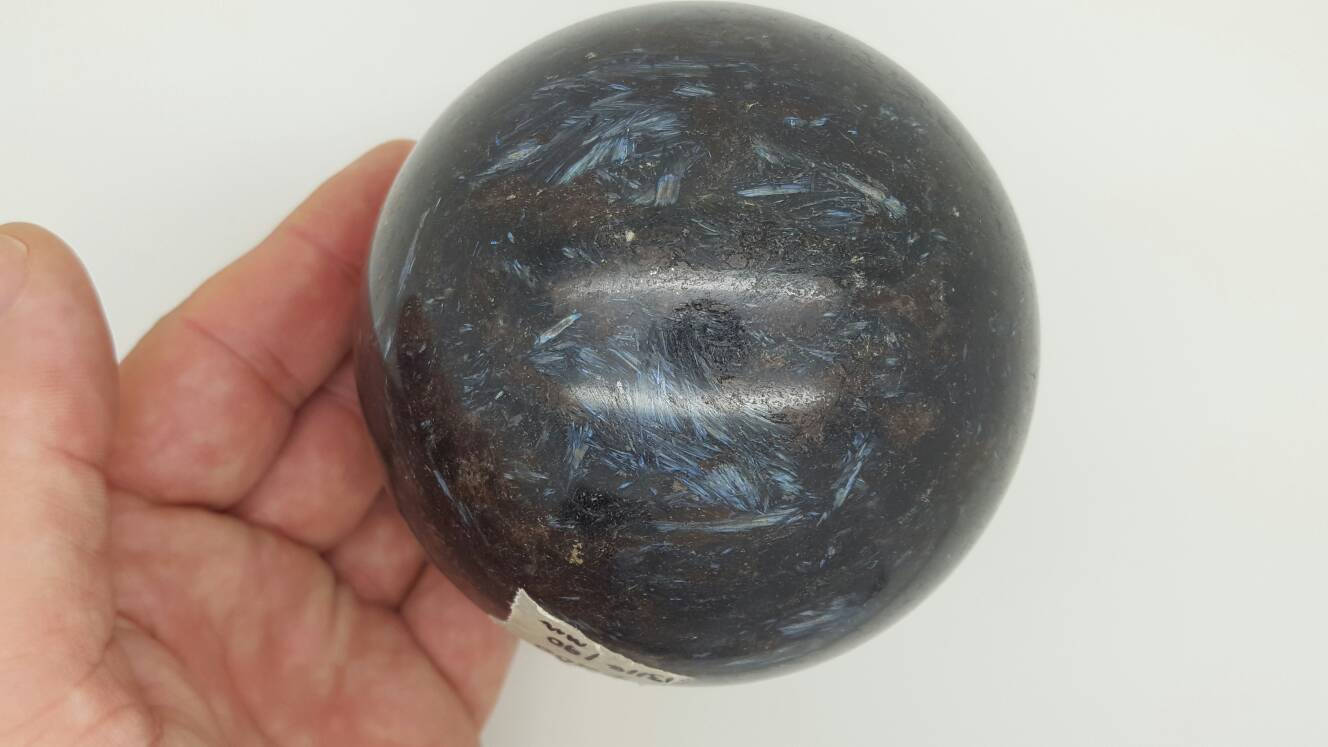 Performs best under light with magnificent display of internal fibers that flash blue,green,gold depending on piece.