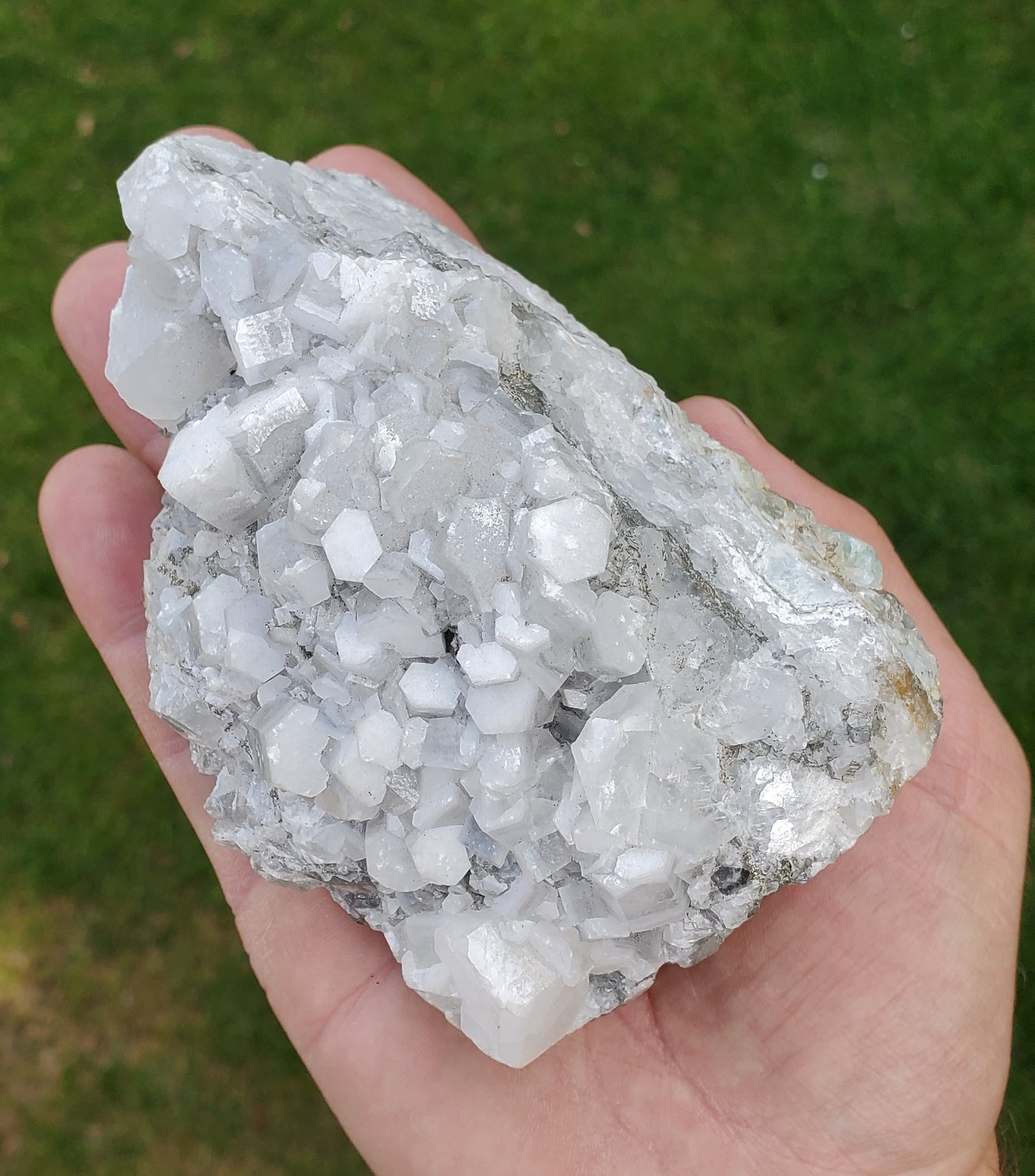 A very nice quality Calcite Cluster from Morrocco showing unique crystal formations. See the extra gold sparkle? There is a dusting of pyrite crystals throughout the piece.