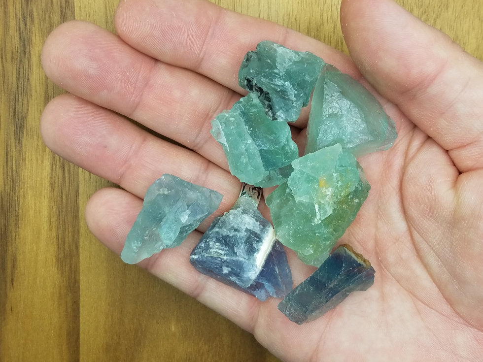Green predominates with these spectacular fluorite rough specimens! There may be some blue and purple in larger orders.