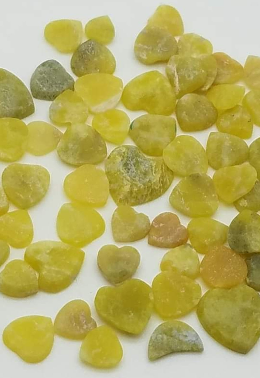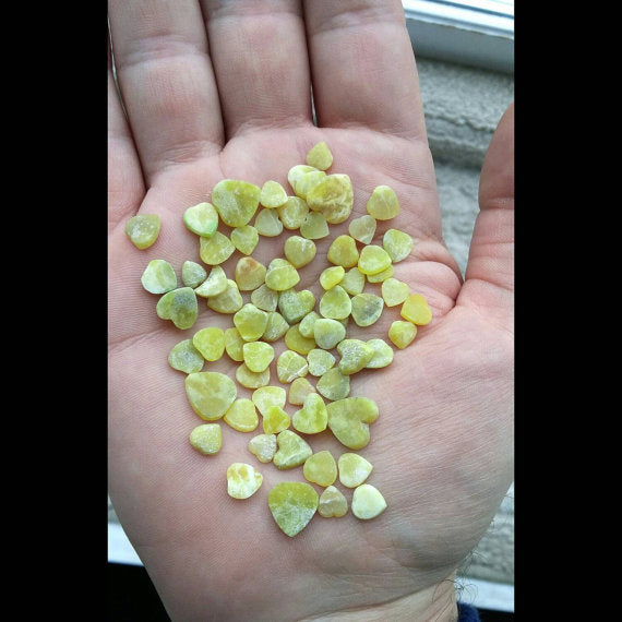 Olive Jade mini heart shaped cabochons.