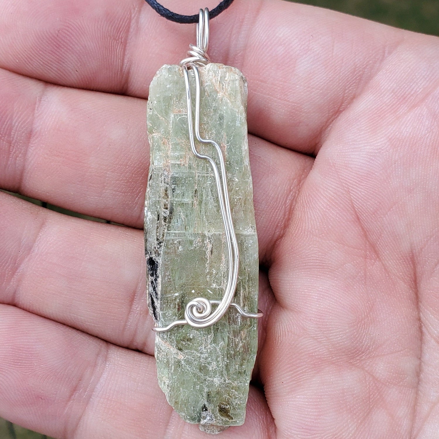 Natural Green Kyanite Blade Wire Wrapped Gemstone Pendant