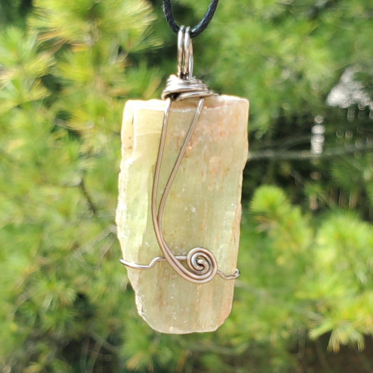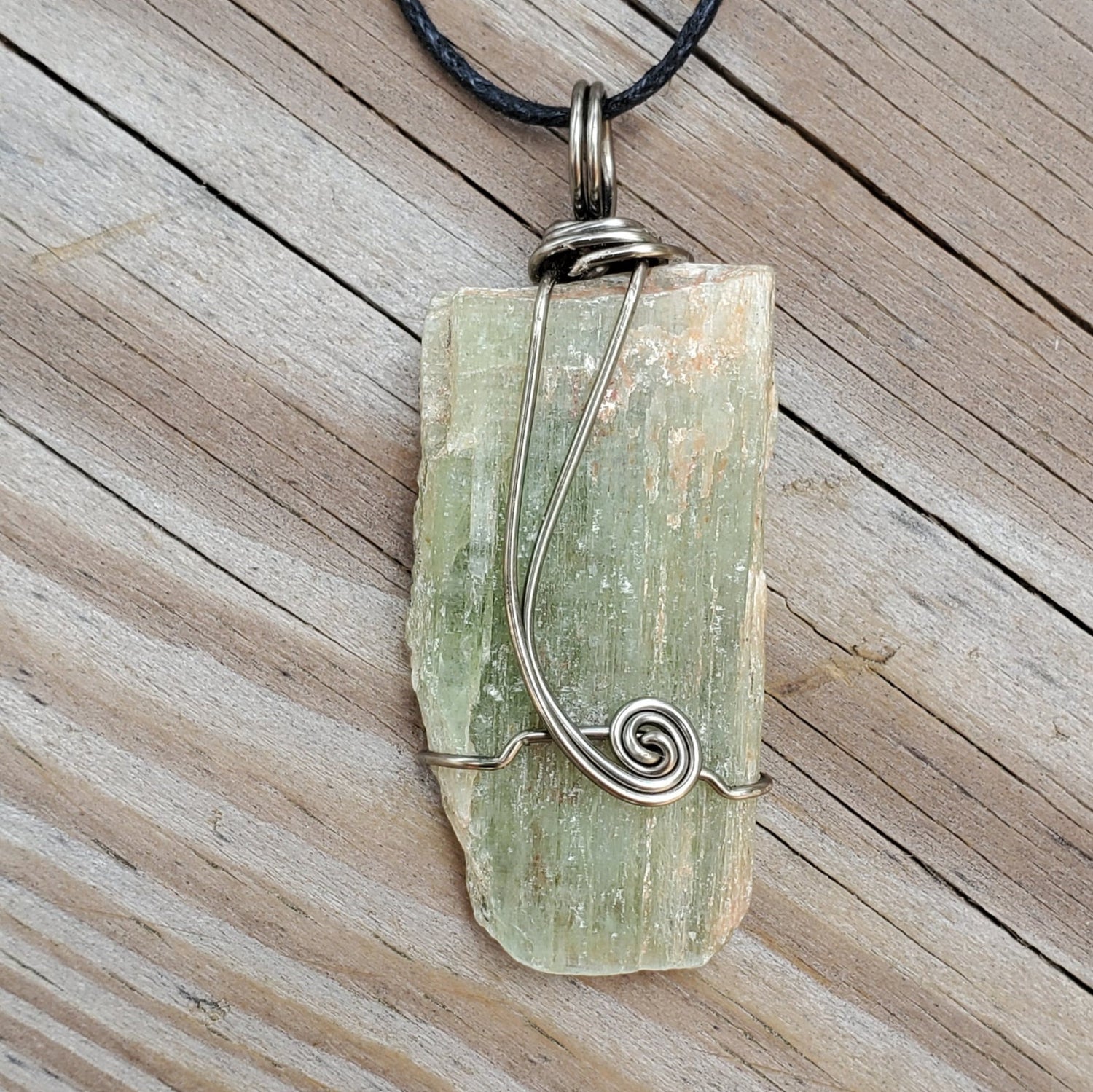 Natural Green Kyanite Blade Wire Wrapped Gemstone Pendant