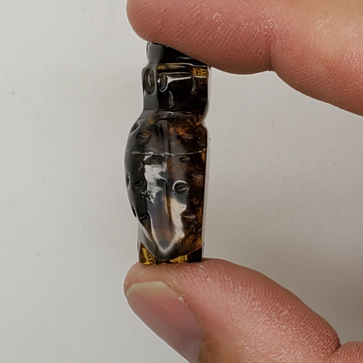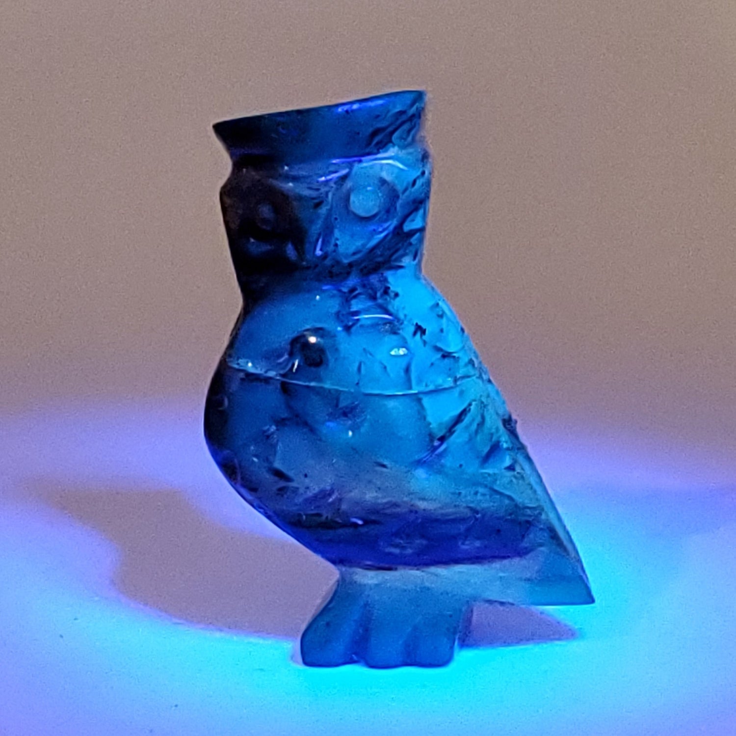Owl Amber Talisman Carving with UV reaction