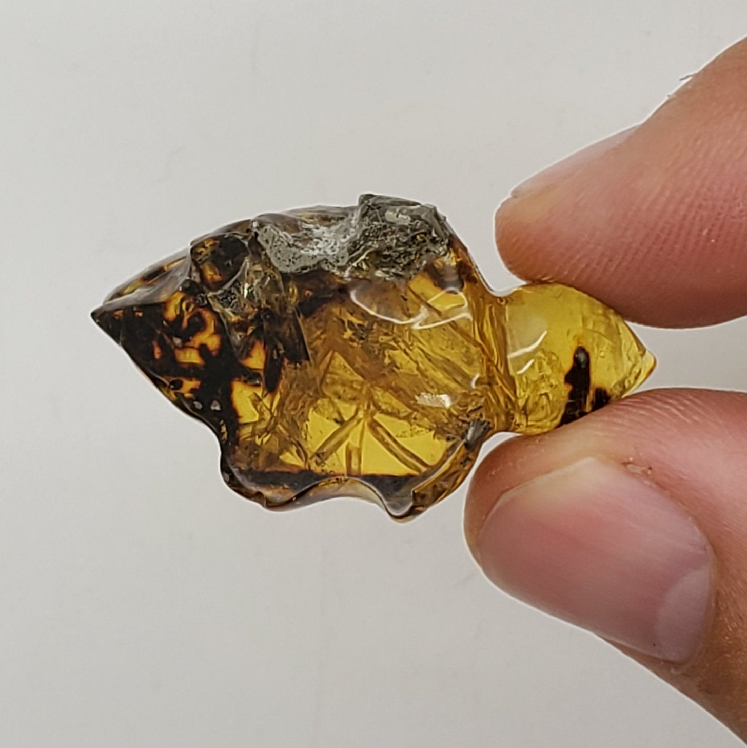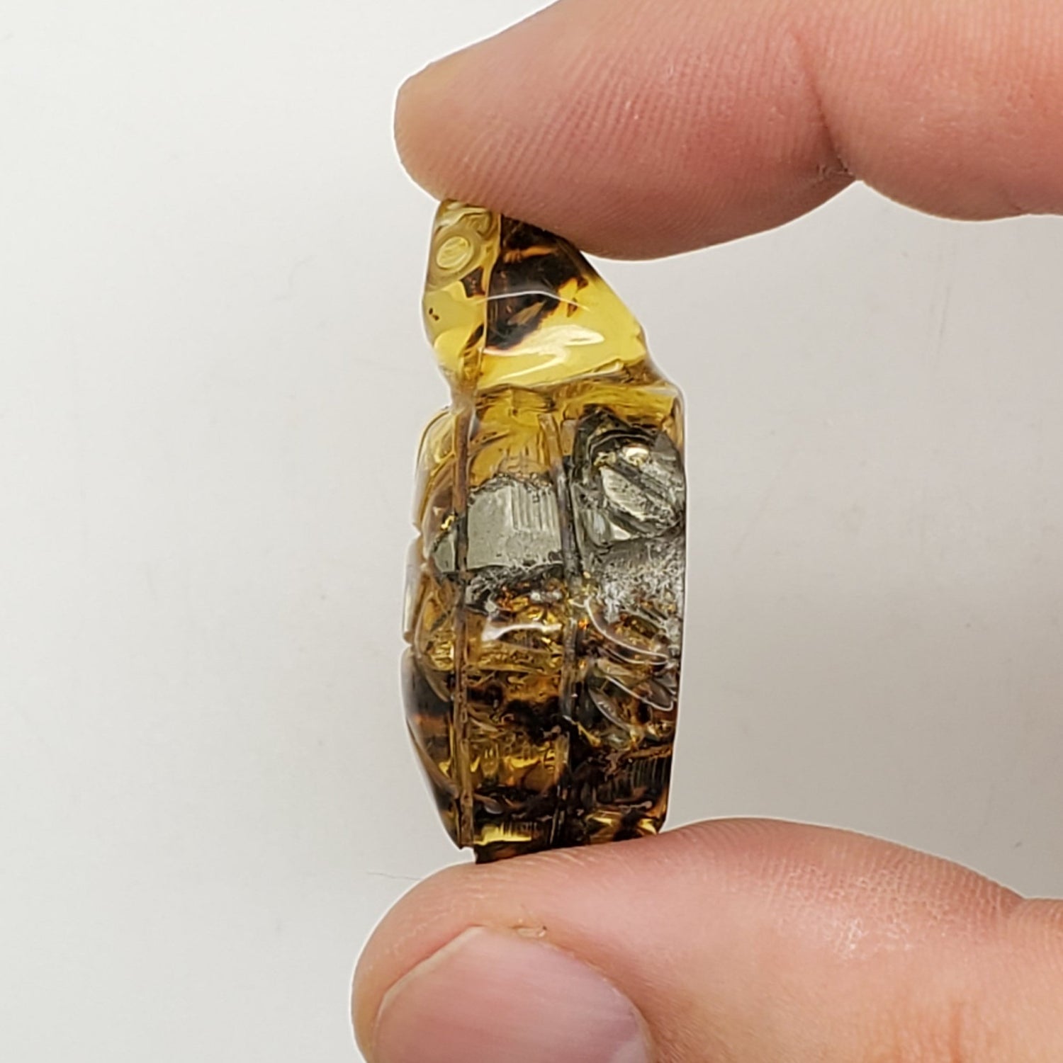 Hand Carved Chiapas Amber Turtle Talisman charm with UV Reactive and Pyritized Inclusions!